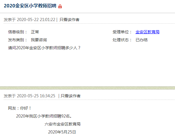 請問2020年金安區(qū)小學(xué)教師招聘多少人?
