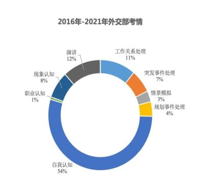 我們對外交部幾年試題進行了梳理和研究,考查內(nèi)容既涉及工作關(guān)系處理、突發(fā)事件處理、規(guī)劃事件處理、職業(yè)認知、現(xiàn)象認知這五種基礎(chǔ)題型,也包括自我認知、演講、情景模擬這三類小眾題型。