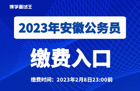 2023安徽公務(wù)員考試公告于1月18日發(fā)布,共招錄7256人。本次報(bào)名采取網(wǎng)上報(bào)名的方式進(jìn)行(涉密等特殊職位除外)。報(bào)名時(shí)間為2023年1月30日9:00至2月5日23:00。報(bào)名網(wǎng)站為安徽省人事考試網(wǎng)(www.apta.gov.cn)。通過(guò)資格審查的報(bào)考者于2月8日23:00前登錄安徽省人事考試網(wǎng)通過(guò)第三方支付平臺(tái)(易寶)繳納筆試費(fèi)用。未按時(shí)繳費(fèi)的,視為放棄報(bào)名。(>>>繳費(fèi)入口)
