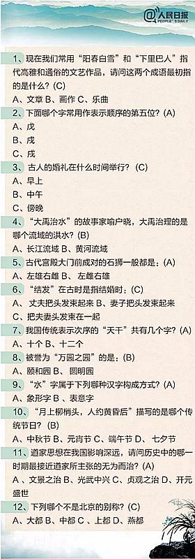 2018年公務(wù)員考試必看:100道中國(guó)文化知識(shí)題