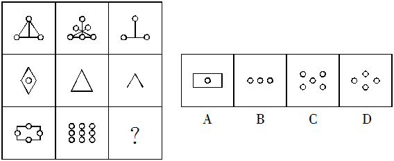 1.【答案】A。解析:每行或每列三個圖形的對稱軸各有0、1、2條,應選擇有1條對稱軸的圖形,A符合。
