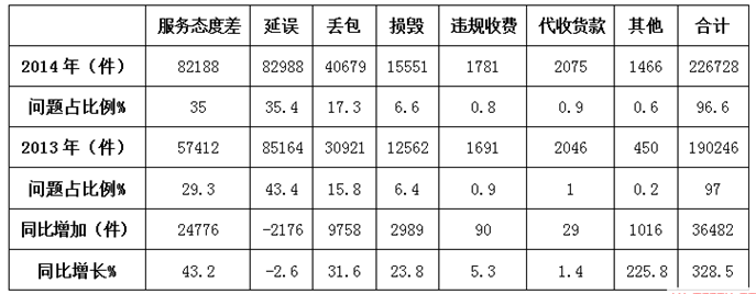 2013-2014快遞業(yè)務(wù)有效申訴問題