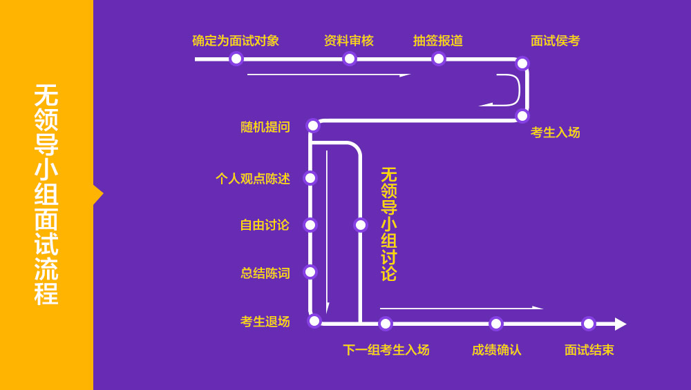該環(huán)節(jié)一般大約20分鐘,考生可以自由安排發(fā)言次序或者按照抽簽順序依次發(fā)言,每人發(fā)言時間不得超過3分鐘或者5分鐘??脊俨粎⒓涌忌挠懻摶蚧卮鹂忌膯栴},以免給考生暗示。
