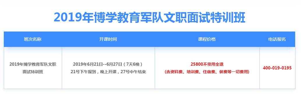 2019年博學教育軍隊文職面試特訓班簡章(點擊查看詳情)